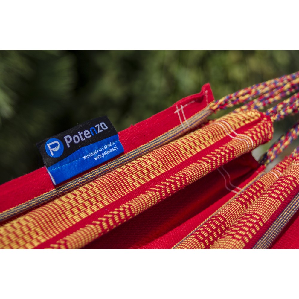 Hamacul mare de grădină marca Potenza, fabricat în Columbia din bumbac, este o alegere perfectă pentru cei care doresc să se relaxeze în grădină sau pe terasă într-un mod confortabil și stilat.