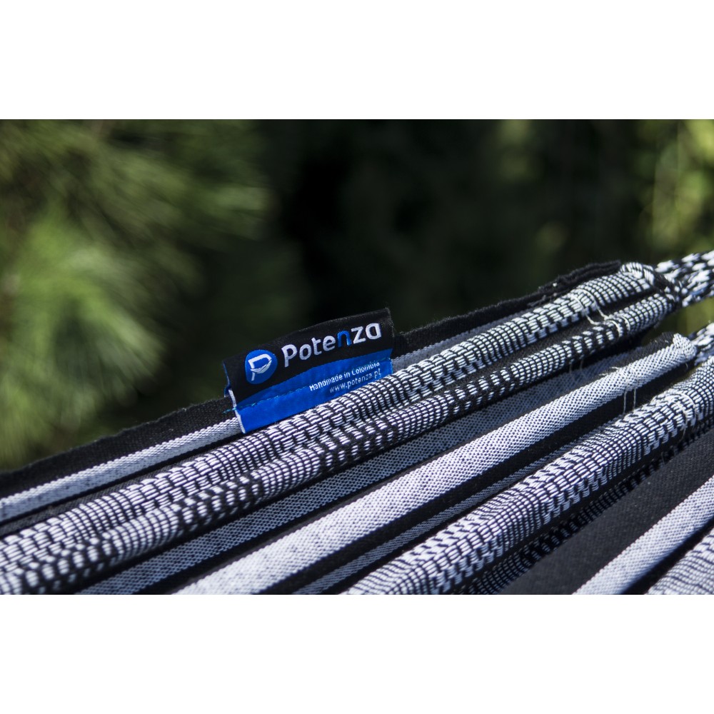 Hamacul mare de grădină marca Potenza, fabricat în Columbia din bumbac, este o alegere perfectă pentru cei care doresc să se relaxeze în grădină sau pe terasă într-un mod confortabil și stilat.