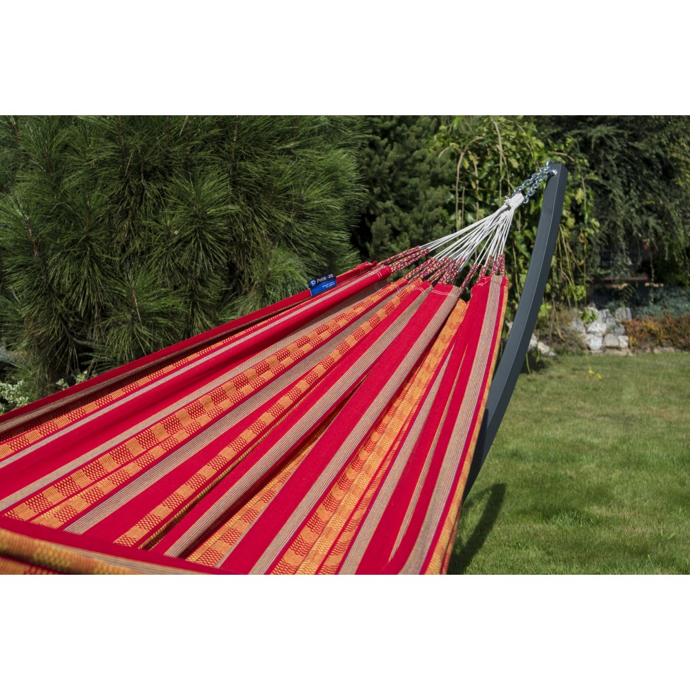 - 100% bumbac în material, ceea ce face hamacul mai respirabil, moale la atingere și ușor de întreținut. Datorită bumbacului, este asigurată o circulație adecvată a aerului.