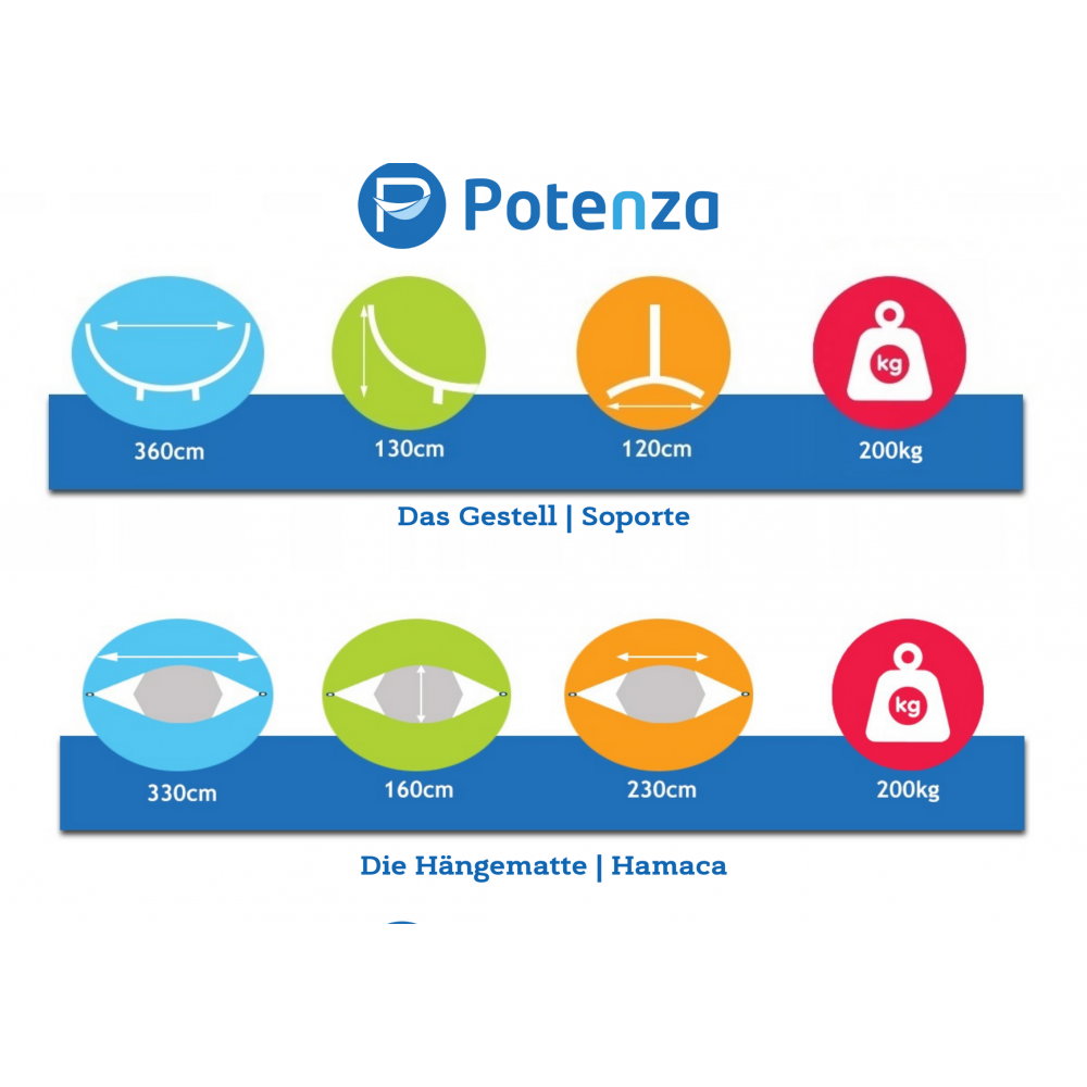 Hamacul mare de grădină marca Potenza, fabricat în Columbia din bumbac, este o alegere perfectă pentru cei care doresc să se relaxeze în grădină sau pe terasă într-un mod confortabil și stilat.