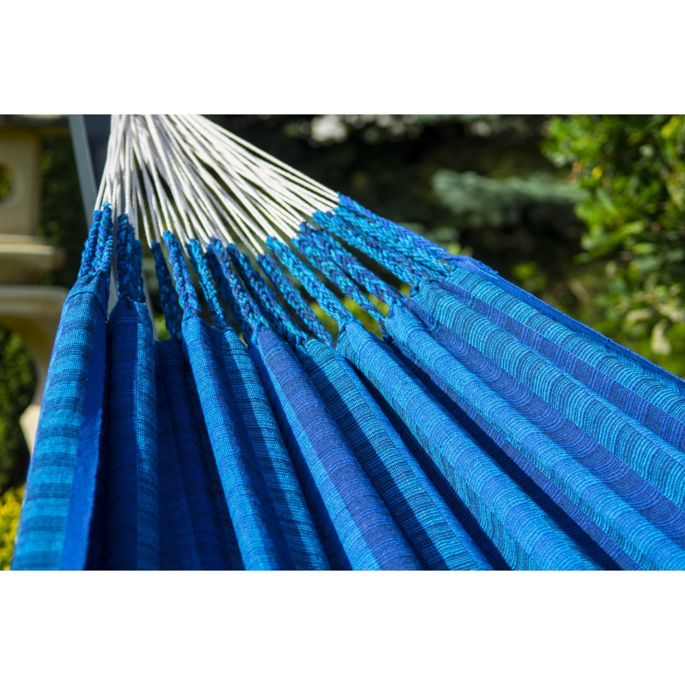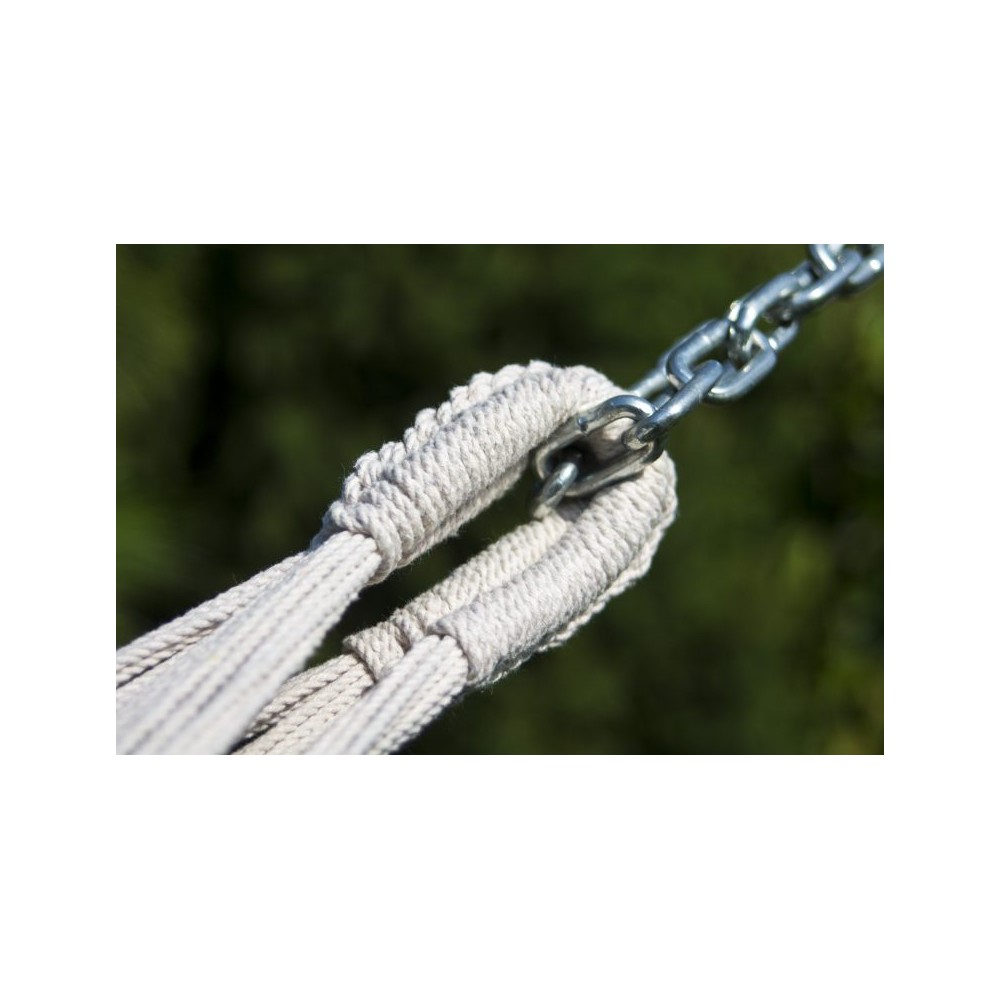 100% bumbac în material, ceea ce face hamacul mai respirabil, moale la atingere și ușor de întreținut. Datorită bumbacului, este asigurată o circulație adecvată a aerului.