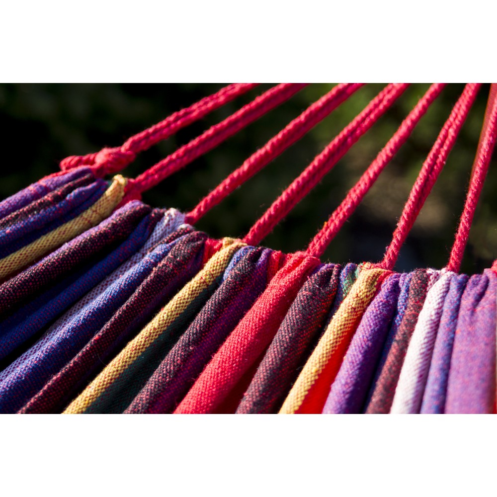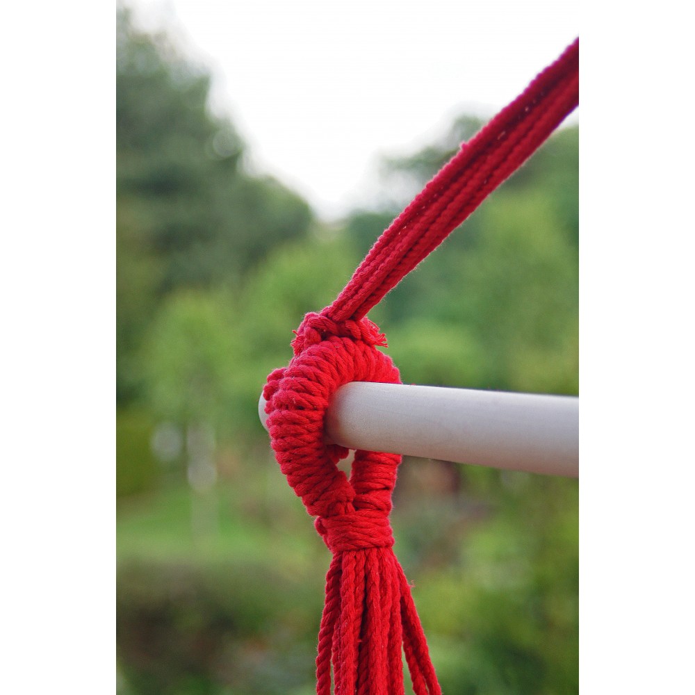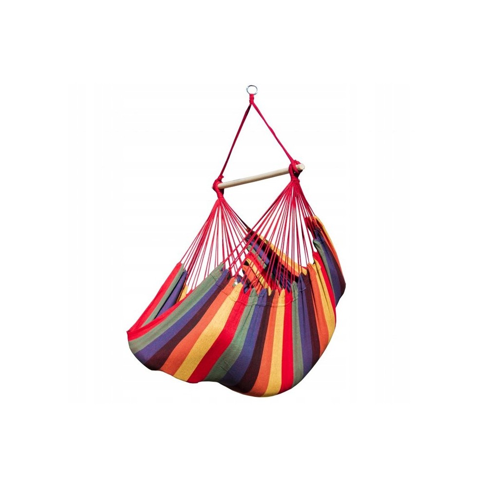 Scaune confortabile suspendate din bumbac. Oferă o odihnă confortabilă. În plus, culorile frumoase adaugă farmec grădinii sau balconului tău.