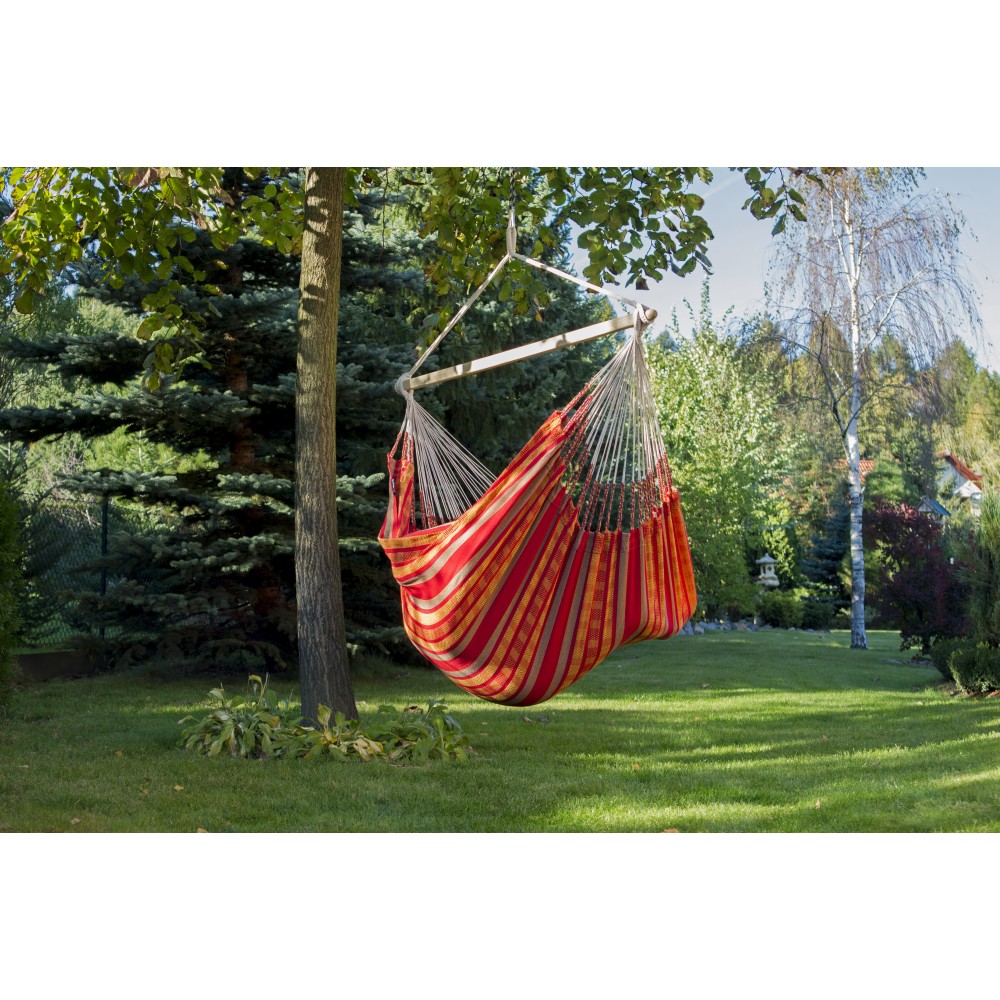 Scaun suspendat confortabil din bumbac. Oferă o odihnă confortabilă. În plus, culorile frumoase adaugă farmec grădinii sau balconului dumneavoastră.