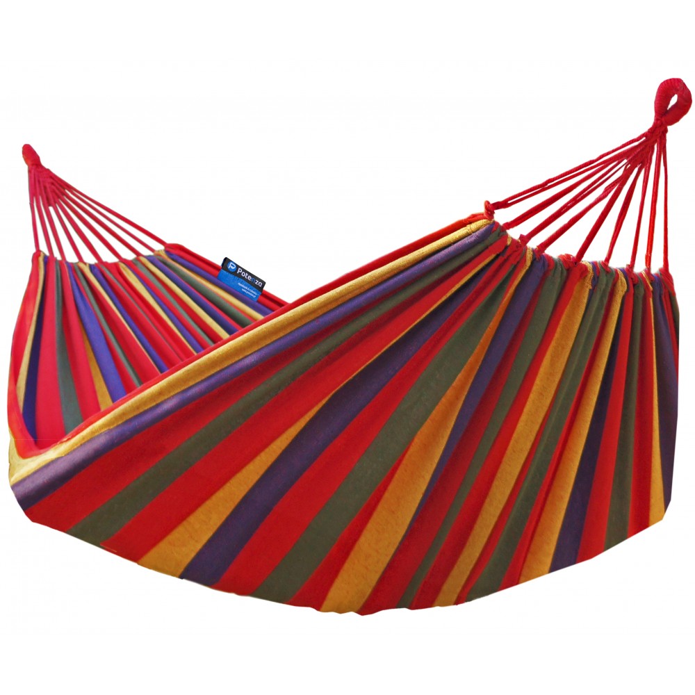 Hamac confortabil fabricat din bumbac de 320 g/m2. Datorită unei suprafețe de întins peste medie, asigură o odihnă confortabilă pentru două persoane.