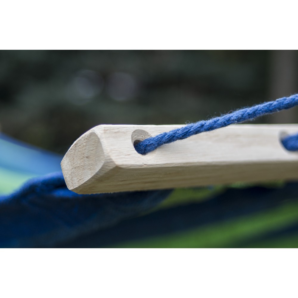 Hamac confortabil fabricat din bumbac de 320g/m2. Datorită unei suprafețe de culcare peste medie, asigură o odihnă confortabilă pentru două persoane.