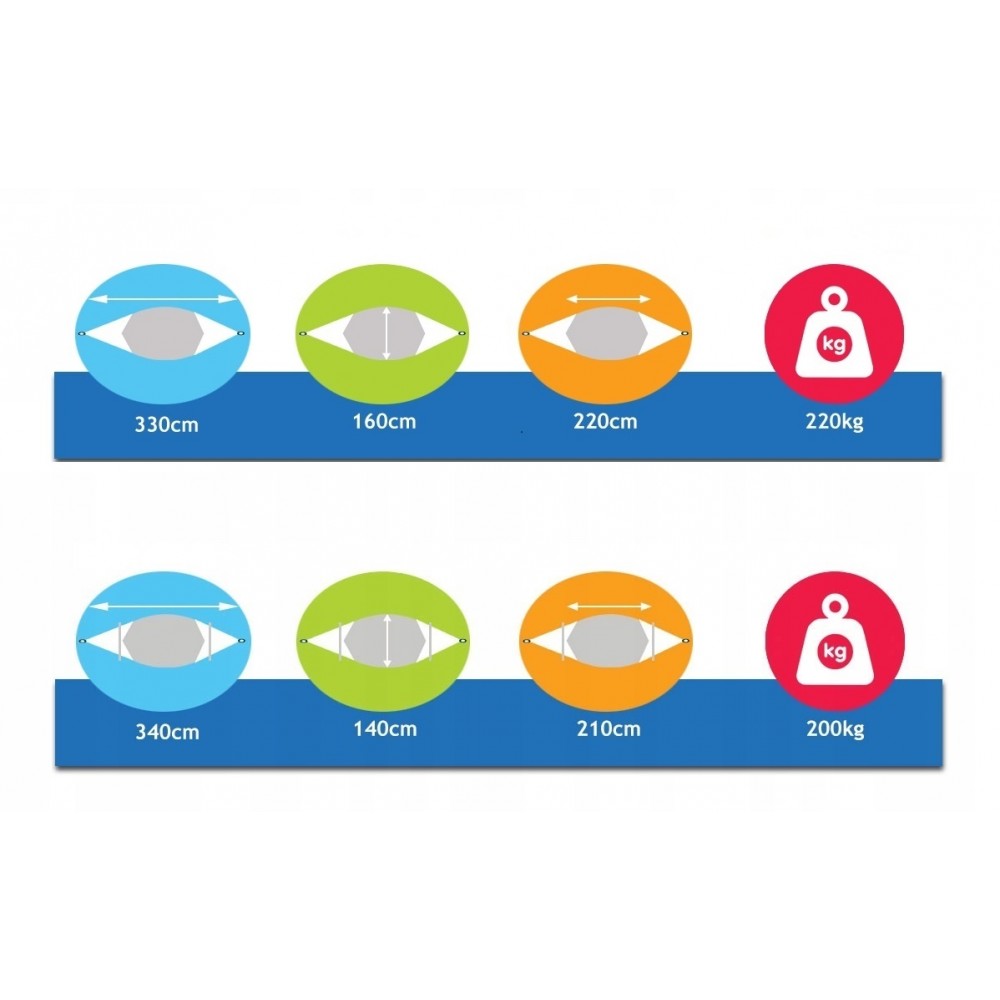 Grosimea materialului de 320 g/m2 al pânzei de hamac se caracterizează prin rezistență ridicată, precum și prin confort ridicat. Datorită densității ridicate a materialului, acesta este foarte rezistent la sarcini.