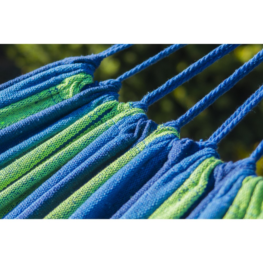 - 70% bumbac în material, ceea ce face ca hamacul să fie mai respirabil, moale la atingere și ușor de întreținut. Datorită bumbacului, se asigură o circulație adecvată a aerului.