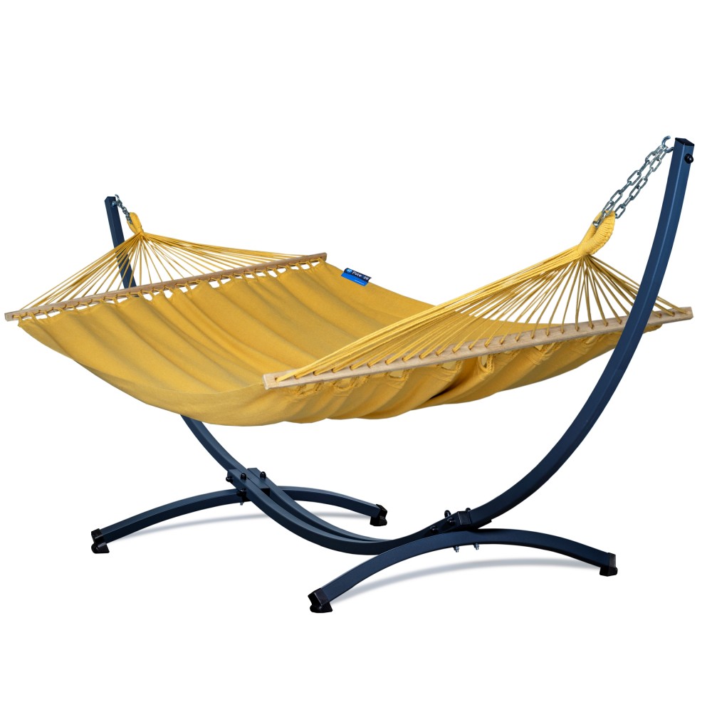 Hamac cu bara de grădină cu cadru suport pentru 2 persoane, Merida Hamac dublu 215x160 cm, 200 kg - aur