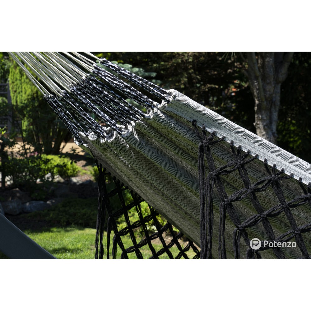 Hamac confortabil din bumbac cu suport. Ofera o odihna confortabila pentru doua persoane. In plus, culorile frumoase adauga farmec gradinii sau balconului dumneavoastra.