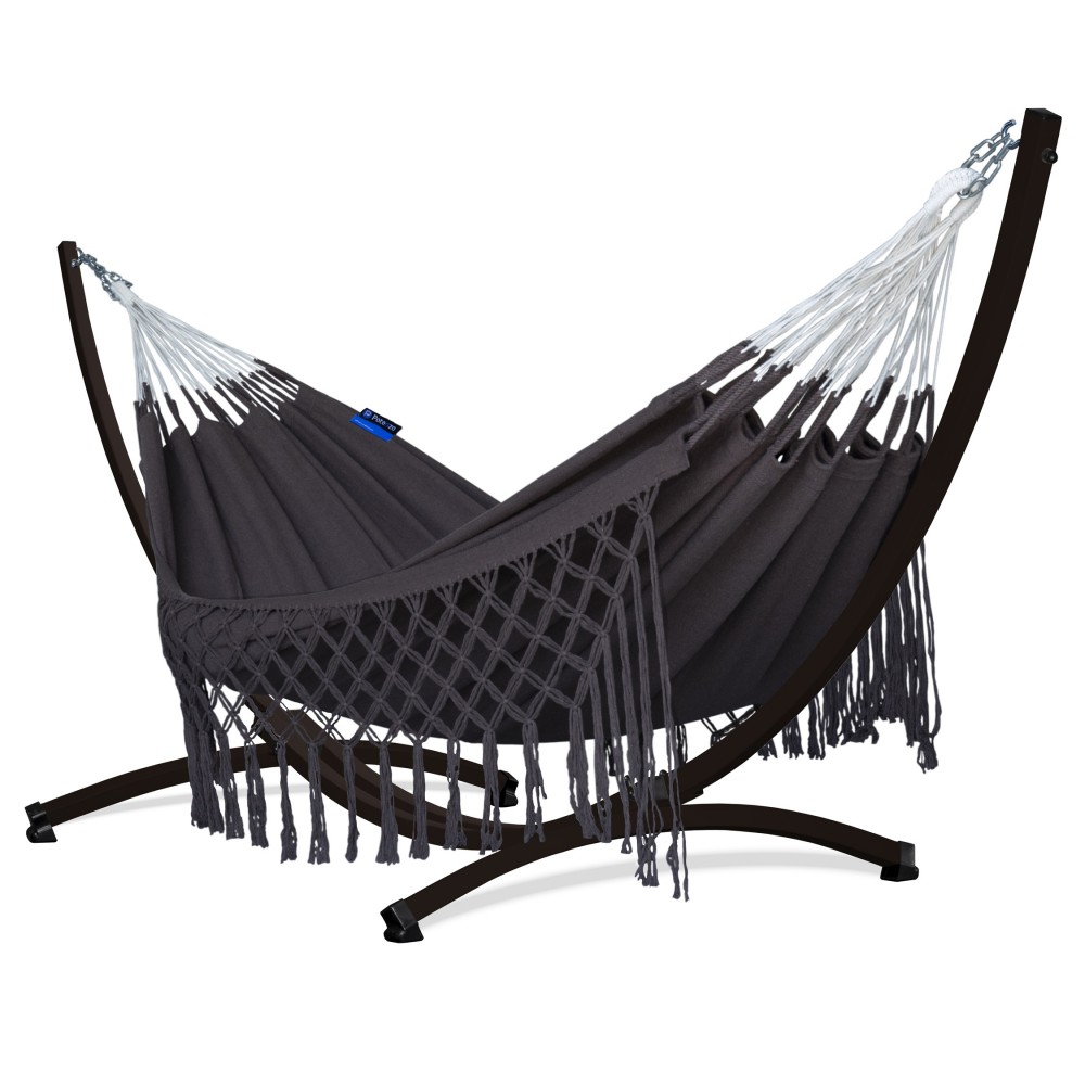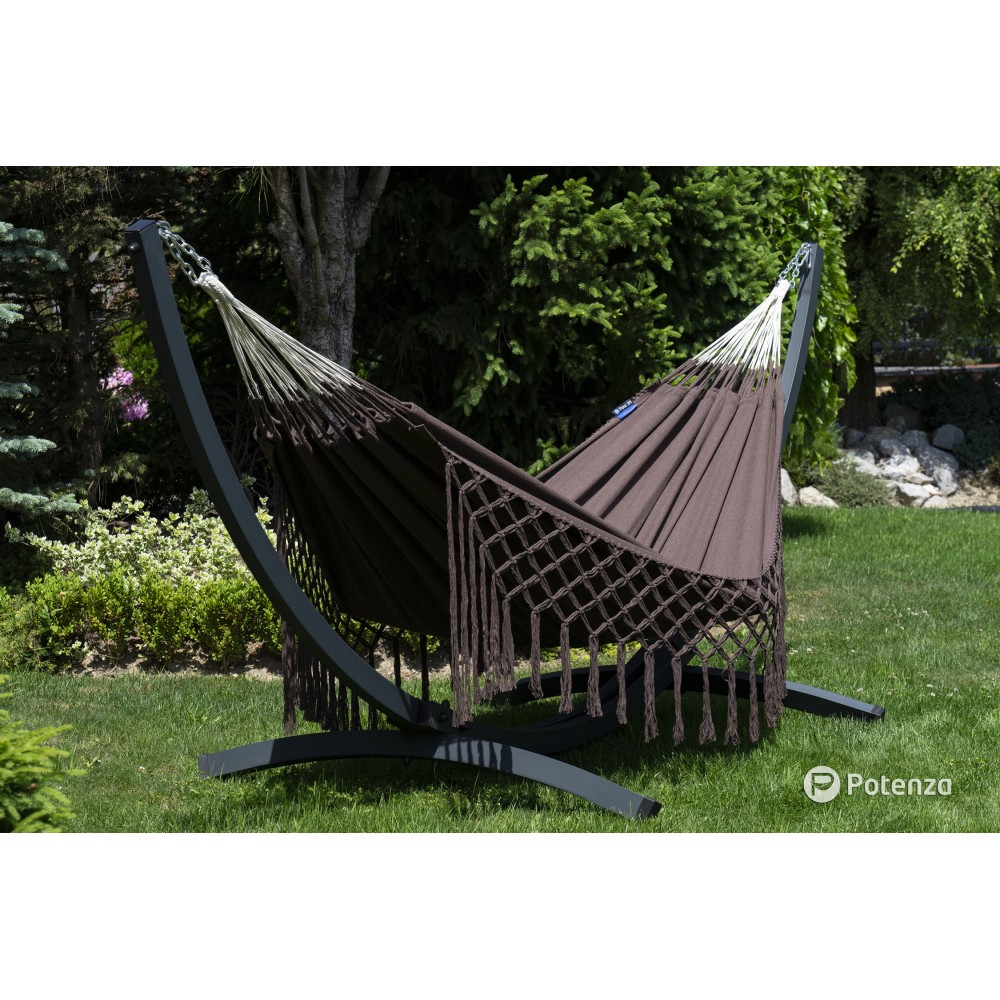 Hamac de grădină cu cadru suport pentru 2 persoane, Boho Medelin Hamac dublu 230x160 cm, 200 kg - Maro