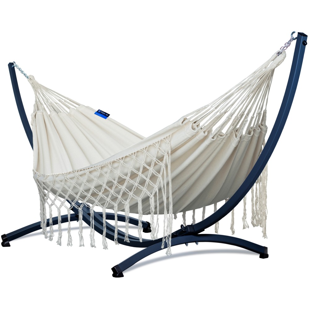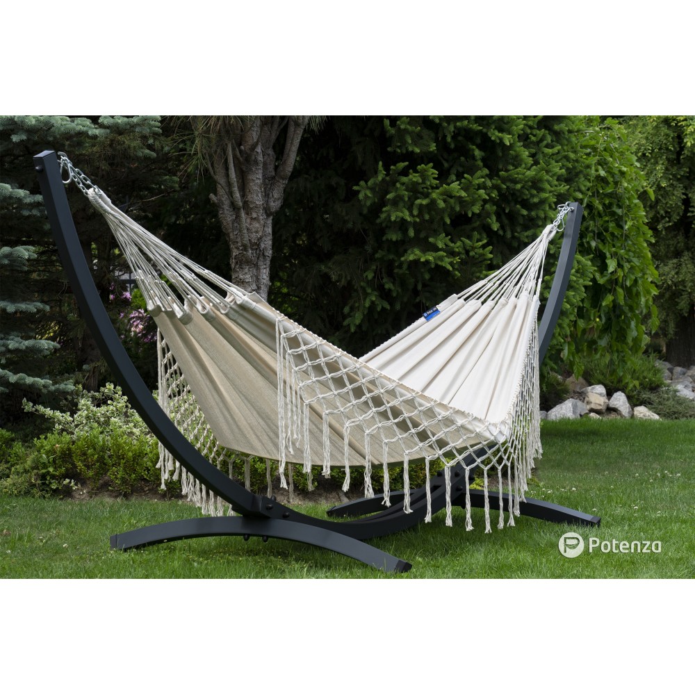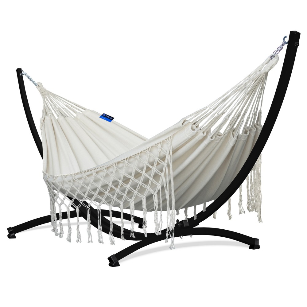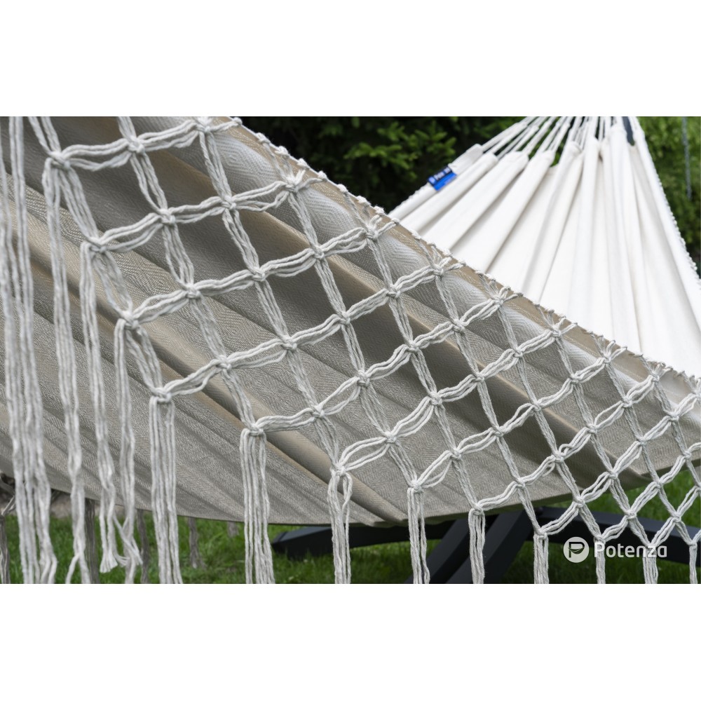 Hamac de grădină cu cadru suport pentru 2 persoane, Boho Medelin Hamac dublu 230x160 cm, 200 kg -Ecru