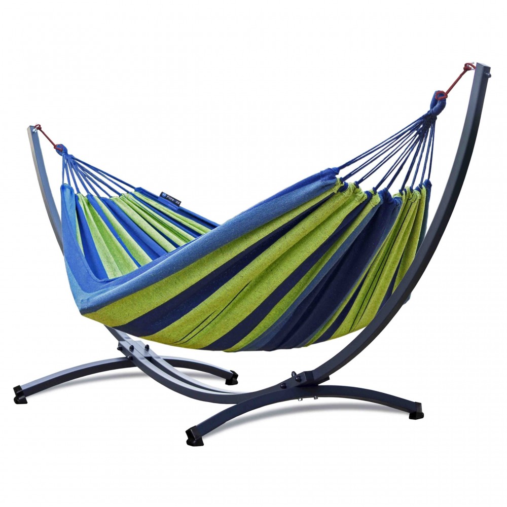Hamac Potenza cu cadru galvanizat - 220kg pentru 2 persoane I hamac - 220x160, 200kg I Cocoon - Verde-Albastru