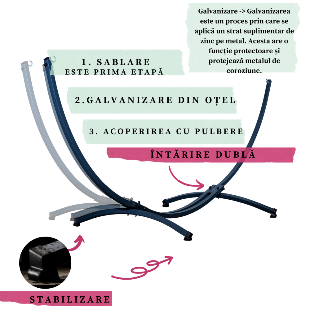 Suportul galvanizat cu hamac este un produs rezistent la intemperii. Va fi perfect pentru grădina dumneavoastră.
