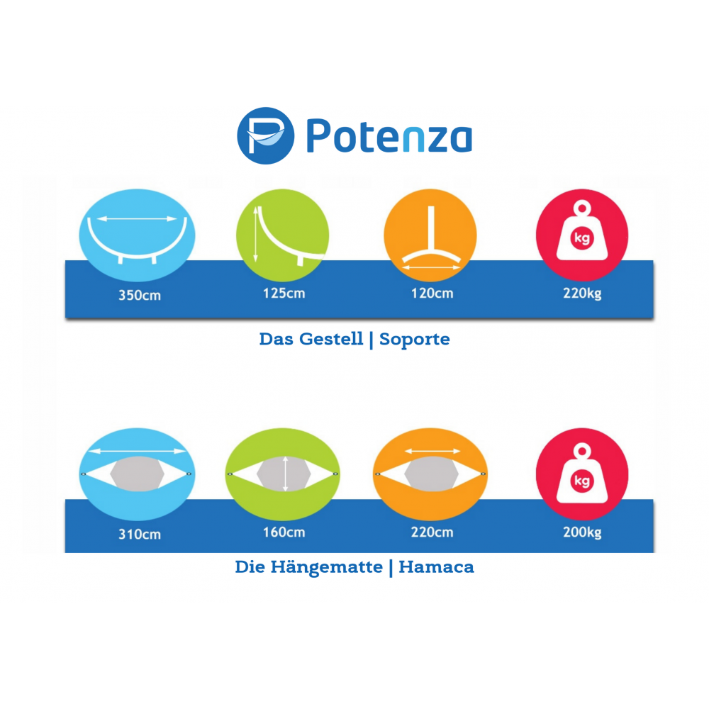 Cadrul Potenza este perfect pentru iubitorii de relaxare în aer liber. Cu o lungime de 365 cm, acest cadru de hamac XXL realizat din oțel galvanizat oferă o bază stabilă și rezistentă la intemperii pentru hamacul dvs. Fie în grădină, pe balcon sau pe terasă - acest cadru pentru hamac vă permite să vă bucurați de oazele de odihnă oriunde. cu o capacitate de încărcare de 220 kg, acest cadru este extrem de robust și stabil. Poate suporta cu ușurință greutatea a două persoane, astfel încât să vă puteți relaxa în companie. Materialul din oțel galvanizat asigură durabilitate și rezistență la intemperii. Fie că este vorba de vânt, ploaie sau soare, acest cadru de hamac vă va rămâne fidel. cadrul Potenza este ușor de asamblat și oferă o opțiune de ajustare flexibilă pentru hamace de diferite dimensiuni. Datorită designului său atemporal în culoarea Basic Graphite, se integrează armonios în orice ambianță de exterior. Confortul și stilul merg mână în mână.relaxați-vă și oferiți-vă puțin timp liber în propriul hamac pe cadrul Potenza. Bucurați-vă de natură, de vremea bună și veniți să vă odihniți ori de câte ori aveți chef. Investește în calitate și creează un loc de relaxare în casa ta. Comandați cadrul Potenza cadru pentru hamac de exterior XXL 365cm și rămâneți impresionat de durabilitatea și confortul său.