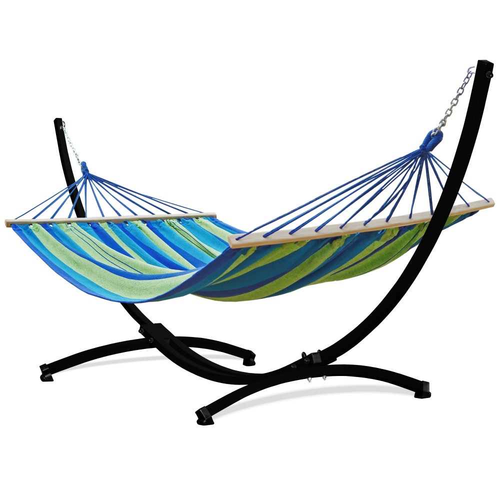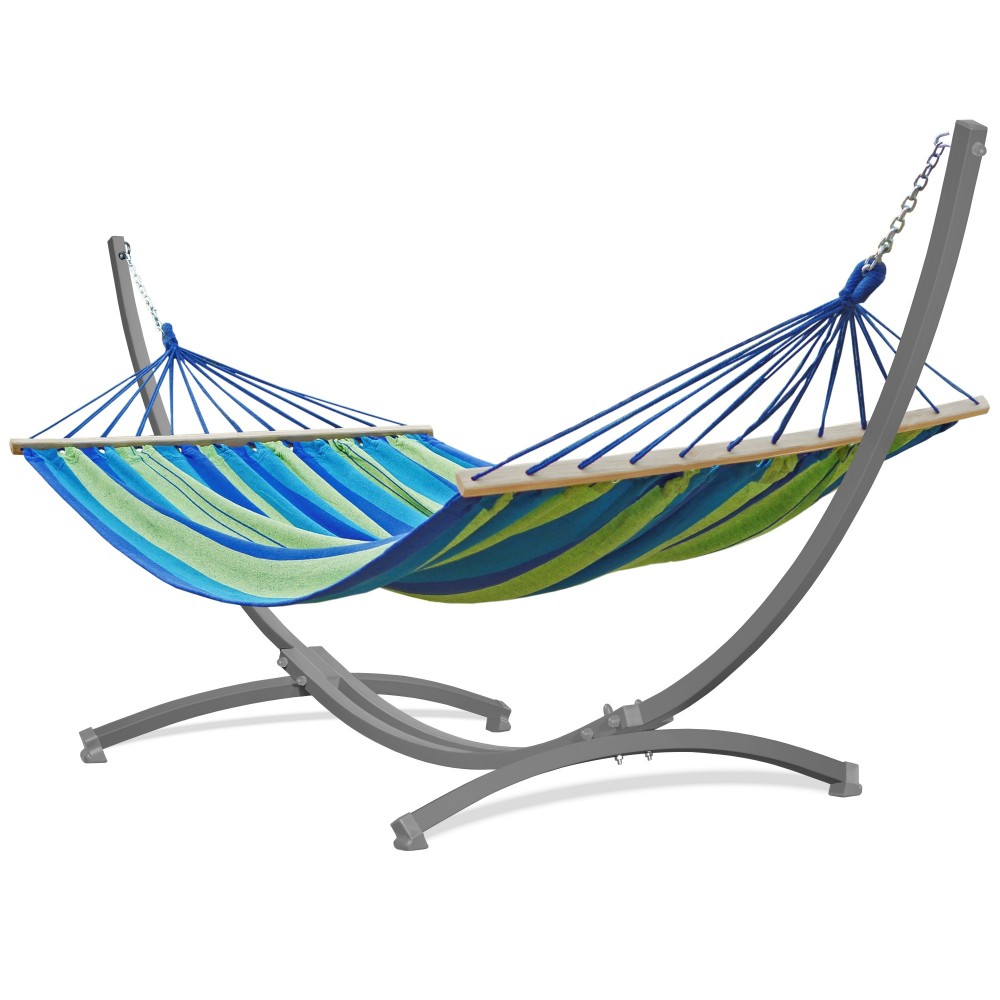Hamac cu bara de grădină cu cadru suport pentru 2 persoane, Hamac dublu 220x160 cm, 200 kg - Albastru Verde