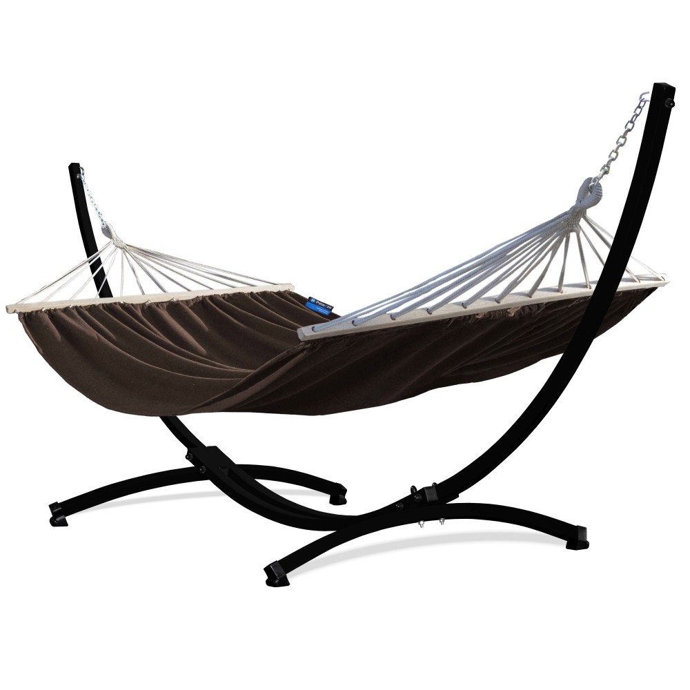Hamac cu bara de grădină cu cadru suport pentru 2 persoane, Hamac dublu 220x160 cm, 200 kg - Maro