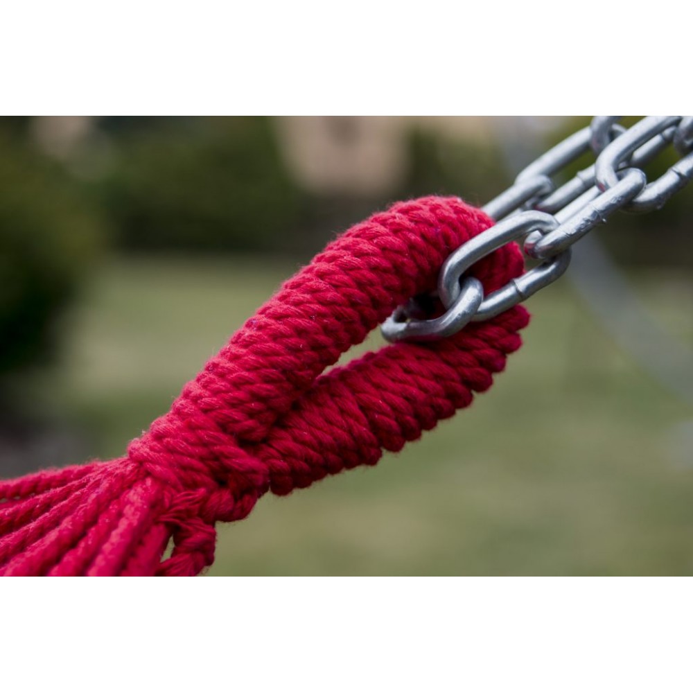 2. Hamac dublu este fabricat din 70% bumbac, se simte moale si este usor de curatat. Un avantaj suplimentar este format de numeroasele corzi care sustin suprafata hamacului, ceea ce sporeste confortul in timpul odihnei.